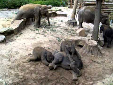 Babyolifantjes zijn dol op ravotten. Kijk zelf maar.
