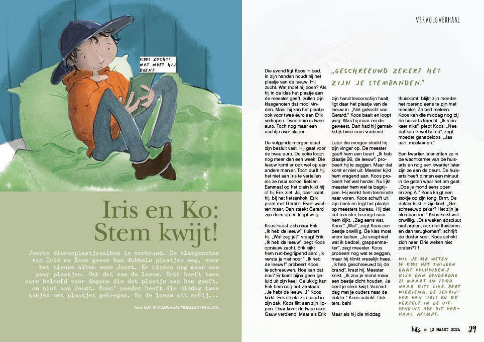 Lees in Kits 13 (of hier) hoe Koos ontdekt dat hij zijn stem kwijt is...